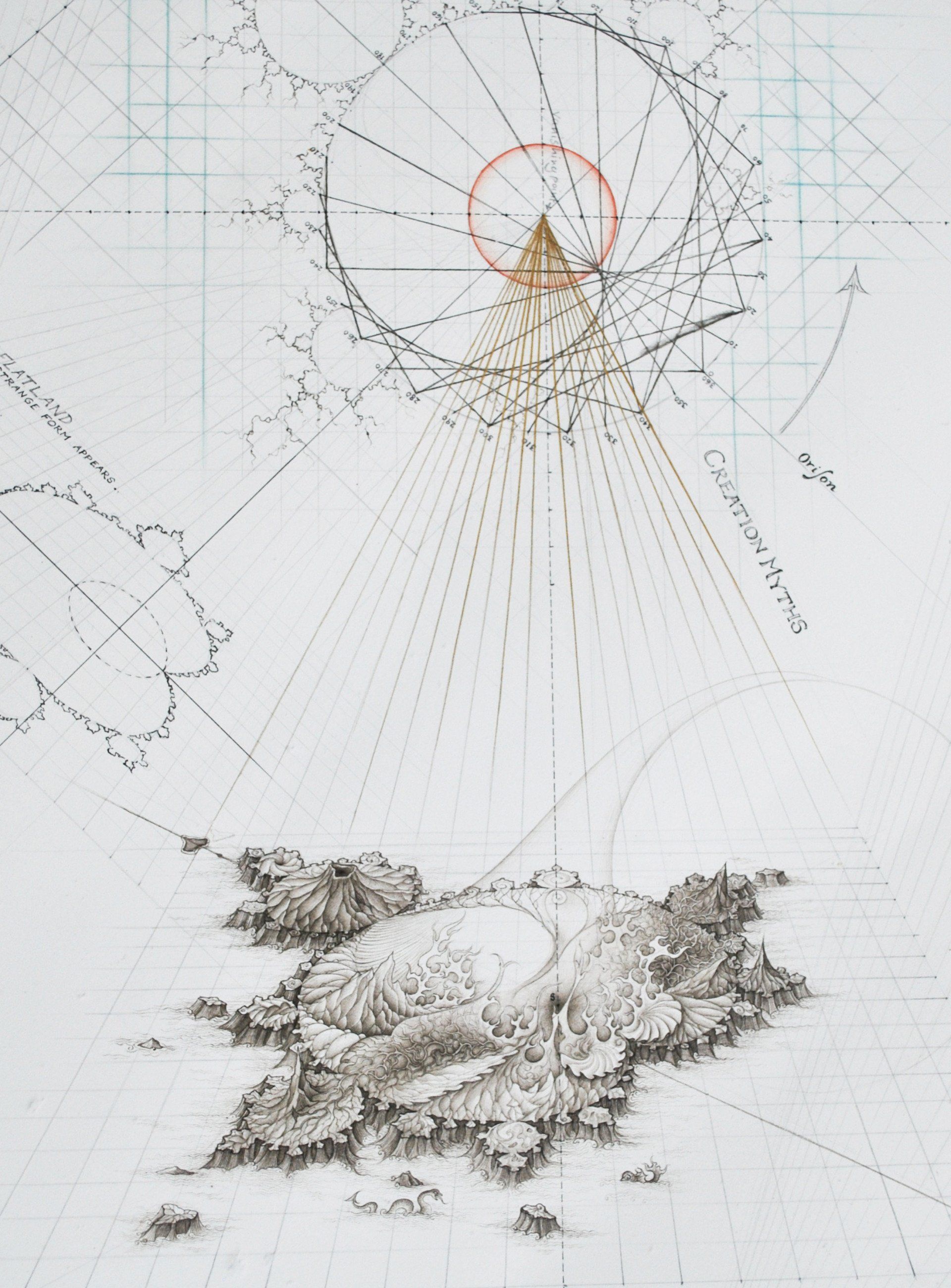 The Mandelbrot Set is envisaged as an other-dimensional landscape, plotted as it is on the Complex Number Plane, which can only be accessed by the agency of other-dimensional beings, such as Dragons, or the Djinn of Islamic thought.