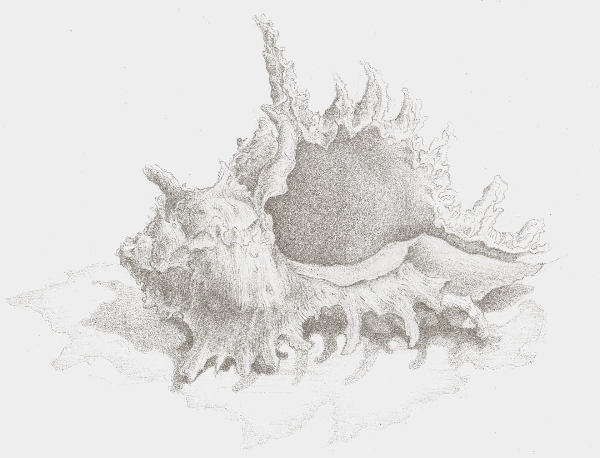 Studies and interpretations of the structures of living organisms using Siyah Qalam brush-drawing, Silver-Point and Graphite Pencil. Silver-point Drawing is a Renaissance technique using a pure silver stylus to draw on specially coated paper. The silver oxidizes, creating delicate warm-grey marks on the surface.