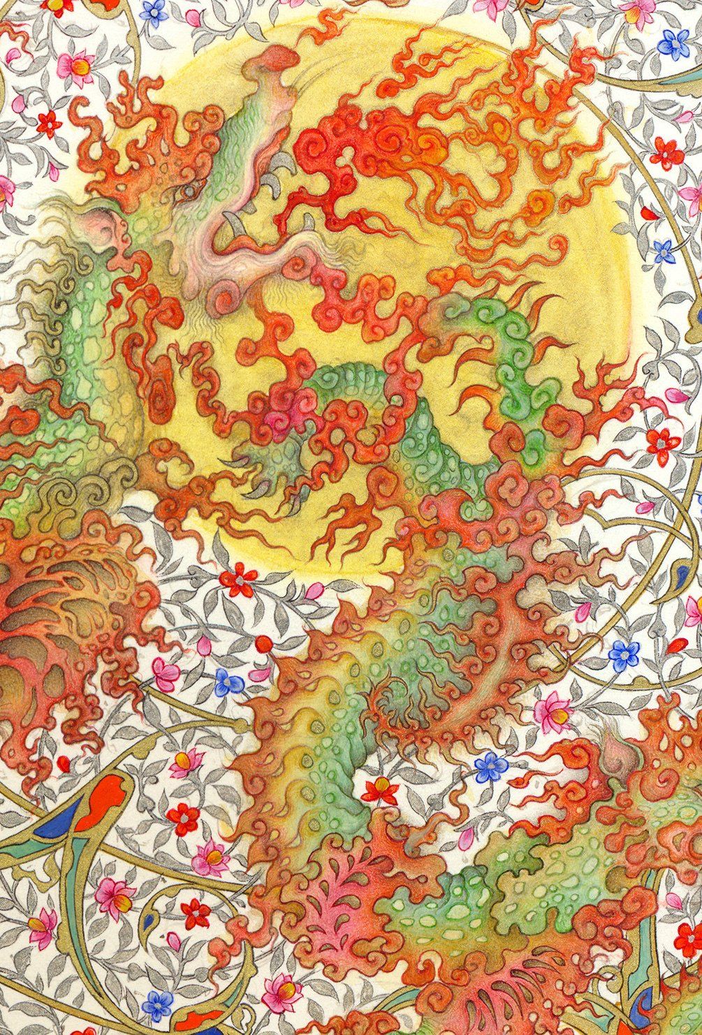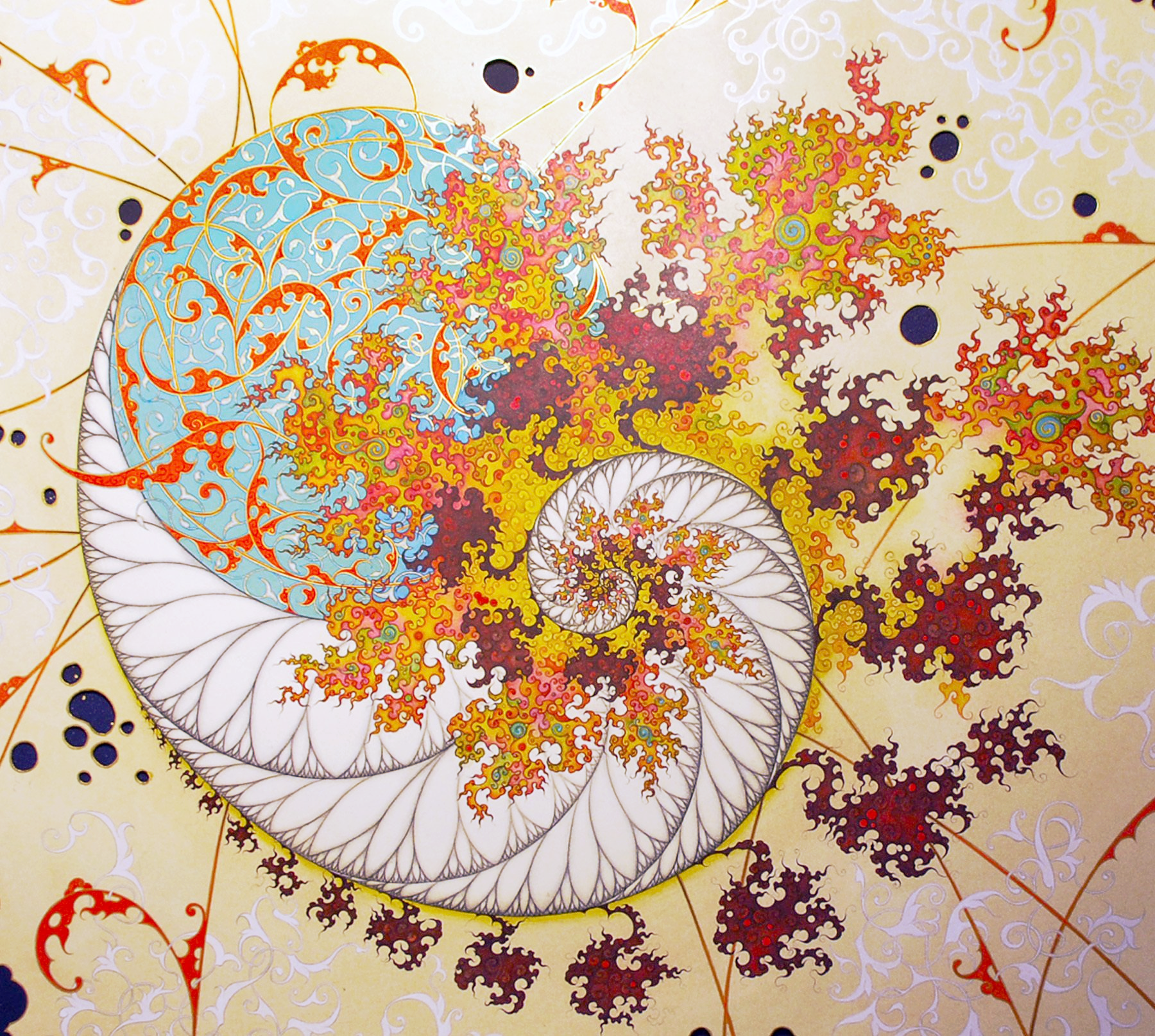 The works are an exploration of new synergies between 15th century Persian Illumination, Number Theory, and 20th century Fractal Concepts.